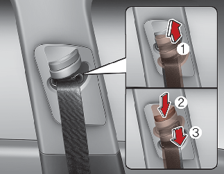Aby ustawić wysokość mocowania pasa bezpieczeństwa, należy obniżyć lub podnieść nastawiacz do odpowiedniej pozycji.