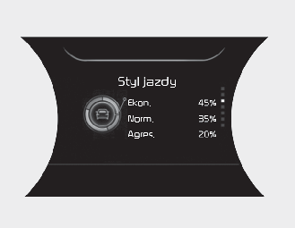 Ten wyświetlacz pokazuje, czy styl prowadzenia kierowcy jest Ekonomiczny, Normalny czy Agresywny.