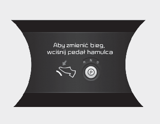 Ten komunikat pojawi się na wyświetlaczu LCD, gdy pedał hamulca nie zostanie naciśnięty podczas zmiany biegu.