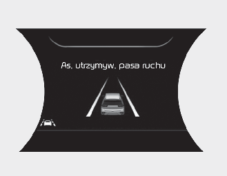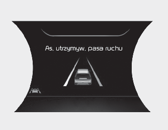 OSTRZEŻENIEAsystenta utrzymywania pasa ruchu zapobiega zjeżdżaniu przez kierowcę z pasa ruchu. Jednakże kierowca nie powinien polegać tylko na tej funkcji, ale zawsze powinien sprawdzać podczas jazdy warunki panujące na drodze.