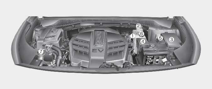 * Rzeczywisty kształt komory silnika w pojeździe może być inny niż na ilustracji.