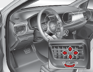 Le flux d’air est dirigé vers la partie supérieure du corps et le visage. De plus, vous pouvez orienter le flux d'air diffusé par chaque aération.