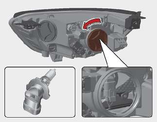 Déposez le couvercle d’ampoule de phare en le tournant dans le sens inverse des aiguilles d’une montre.