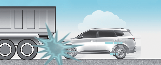 Le freinage brutal abaisse l'avant du véhicule et celui-ci risque de s'engager sous un véhicule qui présente une garde au sol plus importante. Les airbags peuvent ne pas se gonfler dans cette situation d'« encastrement » parce que les forces de décélération détectées par les capteurs peuvent être considérablement réduites par ces collisions d'« encastrement ». |