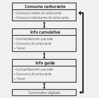 Dopo il rifornimento - Dopo avere rifornito più di 6 litri e percorso più di 1 km/h, il veicolo ritorna automaticamente alle impostazioni iniziali.