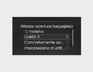 L'altezza di apertura del portellone può essere regolata nelle impostazioni del quadro strumenti o nel sistema Infotainment.