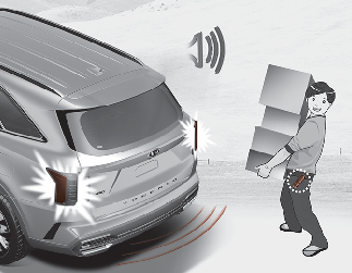 Se ci si trova nell'area di rilevamento [50 ~ 100 cm (20 ~ 40 pollici) dietro il veicolo] portando con sé una chiave intelligente, le luci di emergenza lampeggeranno e il cicalino suonerà per avvisare che la chiave intelligente è stata rilevata, per cui il portellone si aprirà.