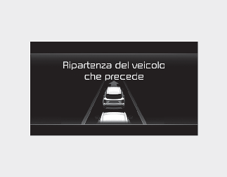 Quando il veicolo di fronte parte da una sosta, l'Avviso di partenza del veicolo che precede informerà il conducente visualizzando sul quadro strumento il messaggio 'Il veicolo che precede sta partendo' (o 'Il veicolo che precede sta procedendo') ed emettendo un segnale acustico.