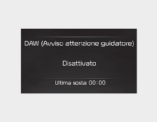 L'Avviso di attenzione del guidatore può suggerire di fare una sosta in funzione dello schema di guida o delle abitudini del guidatore, anche se questo non si sente affaticato.