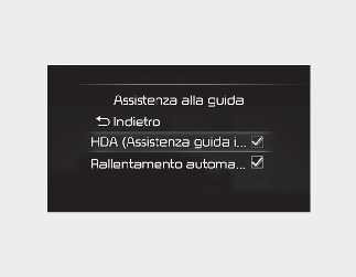 Se c'è un problema con lo Smart Cruise Control (Cruise Control intelligente) basato sulla navigazione, la funzione non può essere impostata dal menu Impostazioni.