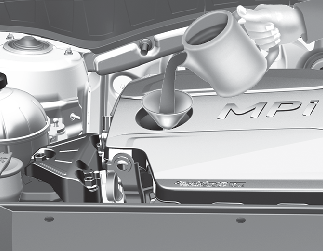 Utilizzare un imbuto per evitare la fuoriuscita di olio sui componenti del motore.