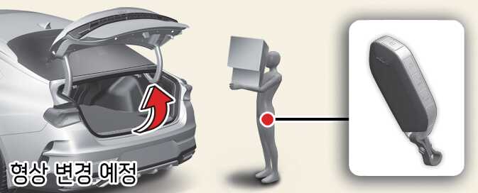 스마트 키 차량에서 간단한 설정으로 트렁크를 자동으로 열리게 하는 기능으로, 양손에 짐을 휴대했을 때 편리하게 이용할 수 있습니다.