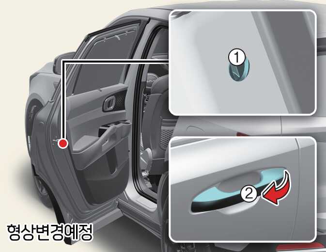 뒷좌석 도어의 수동식 차일드 락을 변경하여 차량 운행 도중 차 안에서 어린이가 뒷좌석 도어를 여는 것을 방지할 수 있습니다.