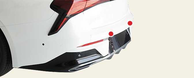 후방 주차 충돌방지 보조(PCA) (사양 적용시) 후방 주차 충돌방지 보조는 후진 중 후방 물체 및 보행자가 감지되면 경고하거나 제동하여 충돌하지 않도록 도와줍니다. 인식 센서 그림 1. 광각-후방 카메라 ODL30530890 그림 2. 후방 초음파센서 ODL30531030 인식 센서의 위치는 위 그림을 참고하십시오.