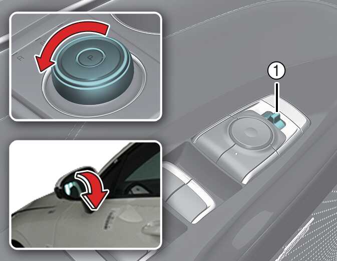 실외 미러 조절 선택 스위치(1)의 위치에 따라 기능이 설정 또는 해제됩니다.