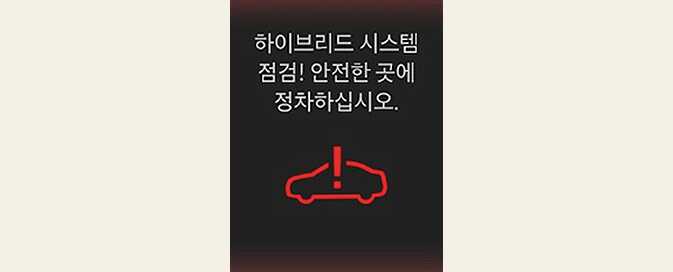 하이브리드 시스템 점검! 안전한 곳에 정차하십시오.