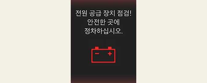 배터리 점검! 즉시 안전한 곳에 정차 하십시오.