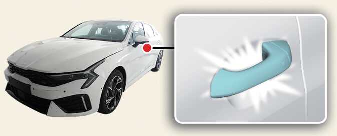 실외 도어 손잡이 잠금/잠금 해제 버튼(버튼 타입) 누름 또는 도어 잠금 해제 센서부(터치 센서 타입) 터치