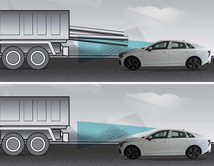 ODL3053043_2전방 차량의 차고가 높거나 적재물이 후면으로 돌출되어 있다면 위험 상황이 발생할 수 있습니다.