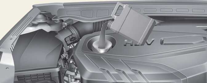 엔진 오일은 엔진의 윤활, 냉각 및 각종 유압 부품을 작동시키는 역할을 합니다. 운전 중 엔진 오일의 소모는 정상적인 현상으로 정기적인 엔진 오일양 확인 및 보충이 필요합니다. 또한 오일 성능 악화를 방지하기 위해 오일 교체 주기 내에 오일양 확인 및 보충을 하십시오.