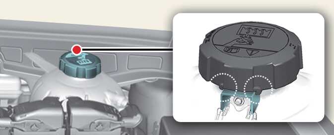 냉각수 보충 후에는 냉각수 보조 탱크 캡을 완전히 잠그십시오. 그러지 않으면 주행 중 냉각수가 넘쳐 엔진이 과열될 수 있습니다.