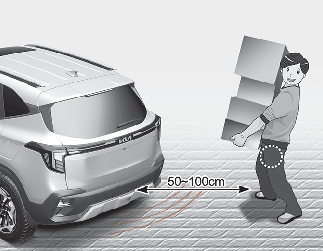 Если вы находитесь в зоне обнаружения (на расстоянии 50–100 см (20–40 дюймов) позади автомобиля) и при вас находится электронный ключ, то в течение примерно 3 секунд мигает аварийная световая сигнализация и подается звуковой сигнал, которые предупреждают вас о том, что система определила электронный ключ и дверь багажного отделения сейчас откроется.