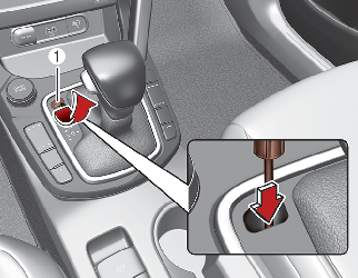 Осторожно снимите колпачок (1), закрывающий отверстие доступа к механизму снятия блокировки переключения передач.