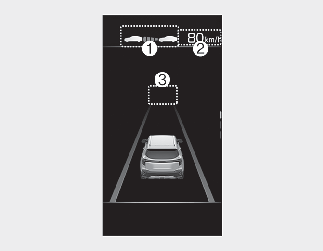 Отображается фактическая дистанция до движущегося впереди транспортного средства.