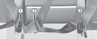 عند استخدام حزام أمان المقعد الخلفي الأوسط، يجب استخدام الإبزيم المميز بعلامة "CENTER" (أوسط).