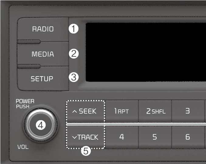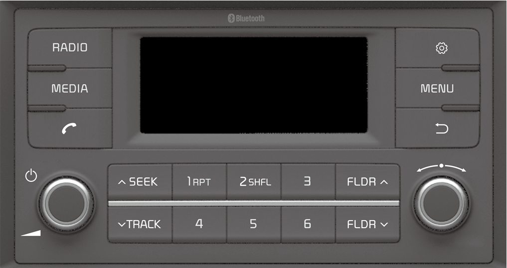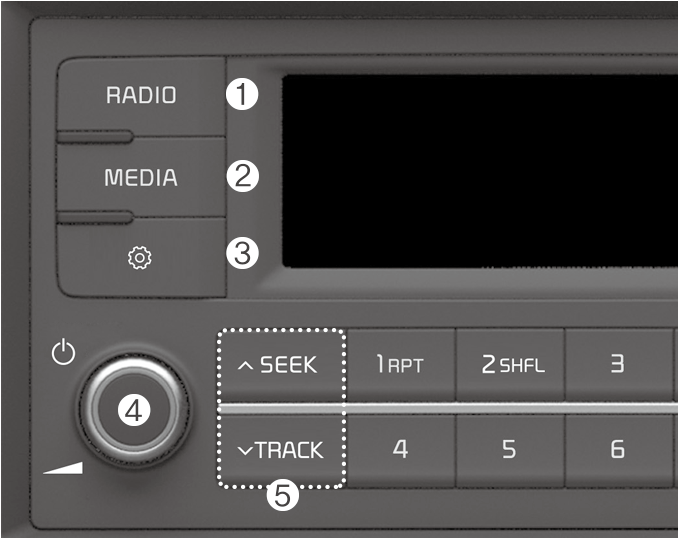 Radio mode: Frequency is controlled by 1 step quickly. When the button is released after pressing and holding, searches broadcast frequencies.