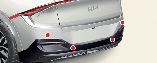 A hátsó területek észlelésére használt hátsó ultrahangos radarok a hátsó lökhárítóban találhatók. Ha az érzékelők lencséjét idegen anyag, például hó vagy eső borítja, az hátrányos hatással lehet az érzékelők teljesítményére, és lehet, hogy az ütközés-elkerülő tolató parkolás során funkció nem fog megfelelően működni. A hátsó lökhárítót mindig tisztán kell tartani.