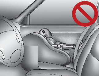 * 동승석 에어백이 장착된 차량은 동승석에 유아용 보호장치를 설치하지 마십시오. 특히 차량 진행 방향의 반대 방향으로 설치하면 에어백 작동에 의해 심하게 다치거나 사망할 수 있습니다(그림 참고).