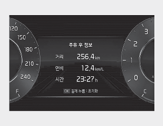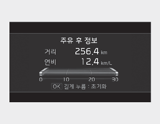 주유 후 정보가 표시된 상태에서 「OK」 버튼을 약 1초 이상 누르면 초기화됩니다.