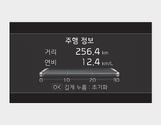 주행정보가 표시된 상태에서 「OK」 버튼을 약 1초 이상 누르면 초기화됩니다.