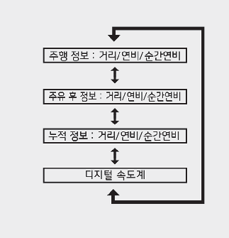 트립 컴퓨터란 주행거리(구간거리계), 현재 연료로 주행할 수 있는 주행 가능 거리, 평균 속도, 주행 시간 등 주행에 관련된 각종 정보를 LCD 표시창에 표시해주는 장치입니다.