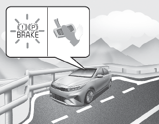 브레이크 경고등이 켜지면 페달이 딱딱해져 제동이 힘들 수 있습니다. 이 경우에는 평상시보다 강하게 밟아 정지해야 합니다.