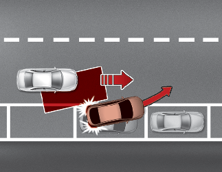 전진 출차 시 후측방에서 다가오는 차량과의 충돌 위험이 판단되면 충돌하지 않도록 제동을 도와줍니다.