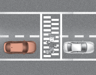 옆 차로의 차량(B)이 자차(A)와 같은 차로로 진입 할 경우 센서의 감지 범위 안으로 들어올 때까지 전방의 차량(B)을 인식하지 못할 수 있습니다.