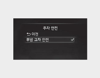 시동 「ON」 상태에서 설정 메뉴의 「운전자 보조 → 주차 안전 → 후방 교차 안전」 을 선택하면 기능이 켜집니다. 기능을 끄고 싶으면 선택을 해제해야 합니다.