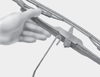 와이퍼 블레이드가 분리된 상태에서 와이퍼 암이 유리창에 닿지 않도록 주의하십시오. 유리창이 파손될 수 있습니다.