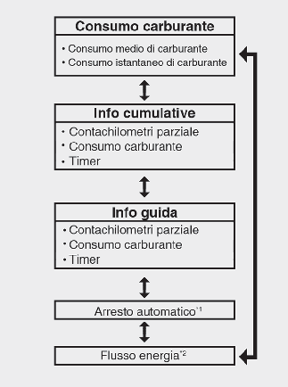 Questo modo visualizza il tempo trascorso in situazione di arresto automatico mediante "Sistema di arresto/avviamento automatico del motore". Per maggiori dettagli, consultare Maggiori dettagli.