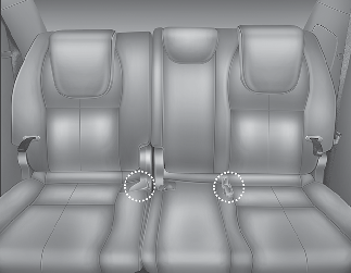 When you fold the rear (2nd and/or 3rd row) seatback, insert the buckle in the pocket between the rear seatback and cushion. Doing so can prevent the buckle from being damaged by the rear seatback.