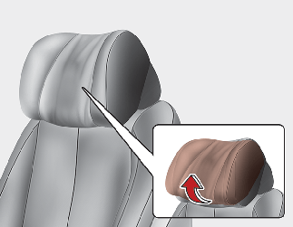 The headrest may be adjusted forward or backward by pulling the lower part of the headrest forward or backward to the desired detent in the direction of the arrow. Adjust the headrest so that it properly supports the head and neck.