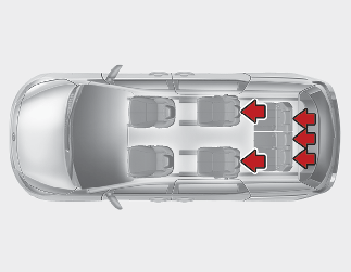 * There was no seat on rear 2nd-row centre at vehicle with 7 seating positions.
