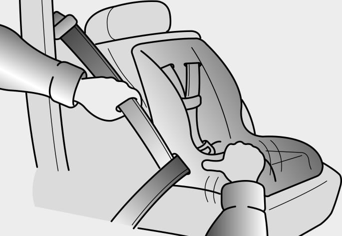 Place the child restraint system in the seat and route the lap/shoulder belt around or through the child restraint system, following the child restraint system manufacturer's instructions. Be sure the seat belt webbing is not twisted.