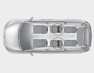 The 2nd row outboard seats (for 7, 8, 9 seats), 3rd row outboard seats (for 9 seats) and 3rd row right seat (for 7, 8 seats) are equipped with a pair of ISOFIX anchorages as well as a corresponding tether anchorage on the back side of the rear cushions. The ISOFIX anchorages are located between seat cushion and back rest, marked with the ISOFIX icon.