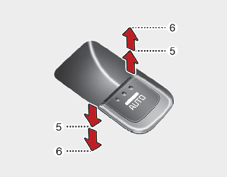 Pressing or pulling up the power window switch momentarily to the second detent position (6) completely lowers or raises the window even when the switch is released. To stop the window at the desired position whilst the window is in operation, pull up or press down and release the switch.