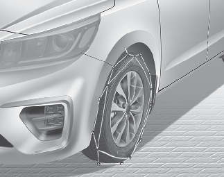 Since the sidewalls of radial tyres are thinner, they can be damaged by mounting some types of snow chains on them. Therefore, the use of snow tyres is recommended instead of snow chains. Do not mount tyre chains on vehicles equipped with aluminium wheels; snow chains may cause damage to the wheels. If snow chains must be used, use wire-type chains with a thickness of less than 12 mm. Damage to your vehicle caused by improper snow chain use is not covered by your vehicle manufacturers warranty.