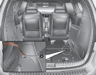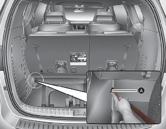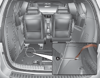 Connect the fixing belt to the striker (A) located at the bottom left/right side of the back of the third row seats.