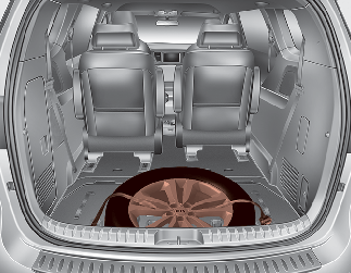 Place the flat tyre with its outer part facing upwards in the middle of the three-row seats.